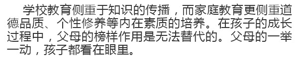 孩子在上學(xué)之前,所學(xué)的東西都來源于周圍,其中父母的影響是最大的,所以家庭是孩子成長的搖籃,父母是孩子的第一任老師,家庭教育更是教育孩子的起點(diǎn)與基點(diǎn)。良好的家庭教育不僅是造就孩子成才的必要條件,也是優(yōu)化孩子心靈的催化劑,家庭教育的好與壞將直接影響孩子的一生。